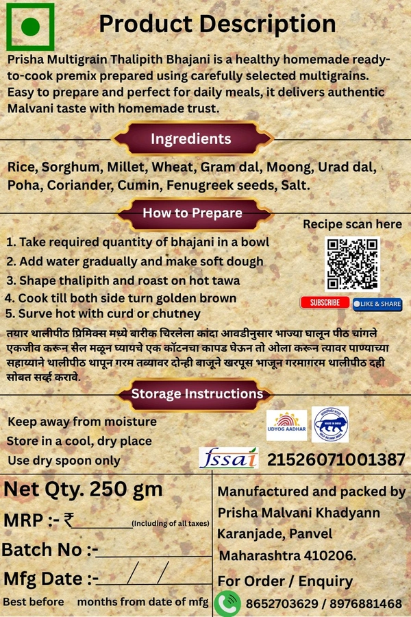मल्टीग्रेन थालीपीठ प्रिमिक्स (Multigrain Thalipeeth Premix)